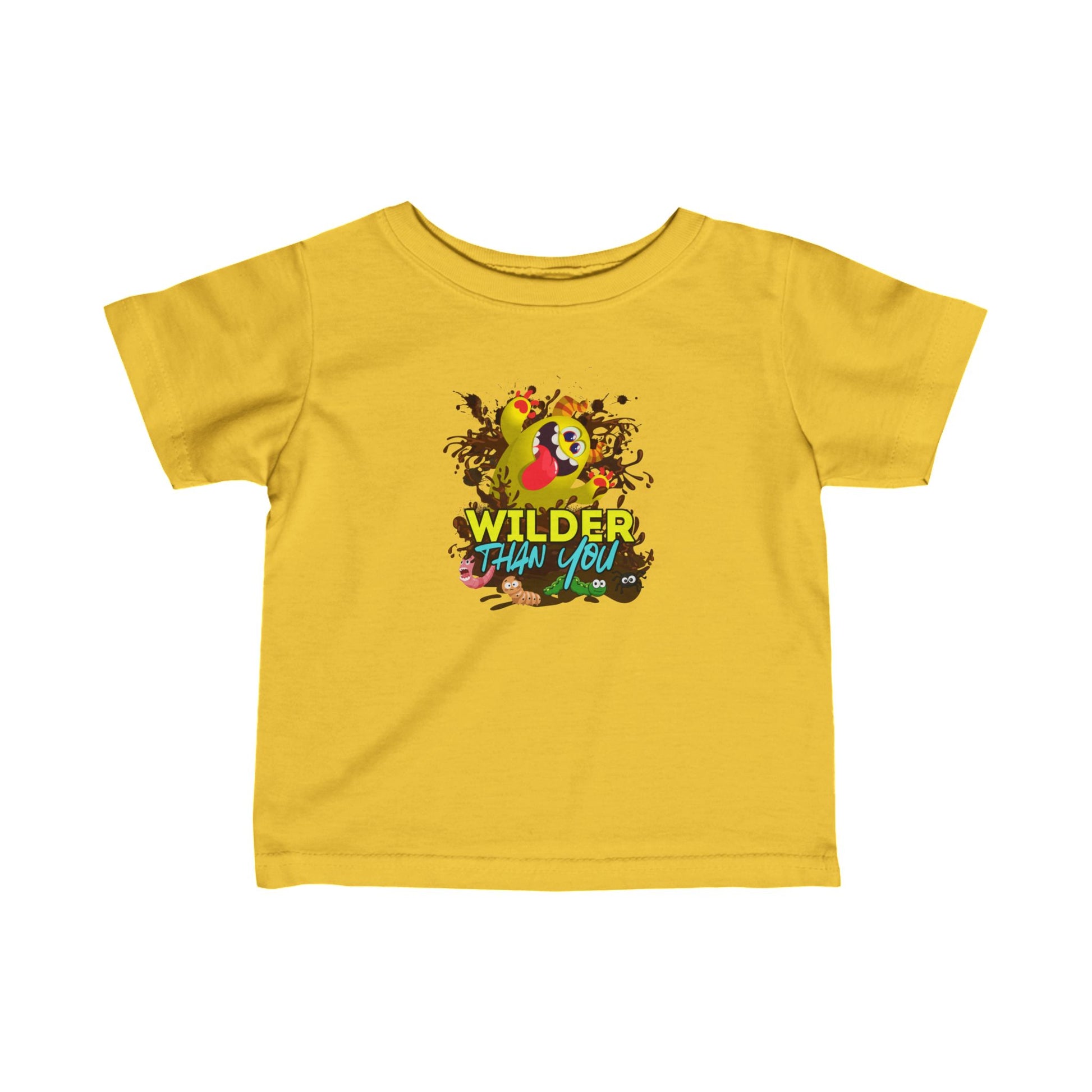 This Infant Tee features a playful design with 'children of ankh universe' and 'Wilder than you' joke, making it perfect for young ones who love unique and fun clothing. The soft and smooth fabric, along with the ribbed knit collar, ensures comfort and durability for little ones to play in all day long. Suitable for parents looking for a whimsical and creative piece for their children's wardrobe. Ideal for gifting on birthdays, baby showers, and special occasions.