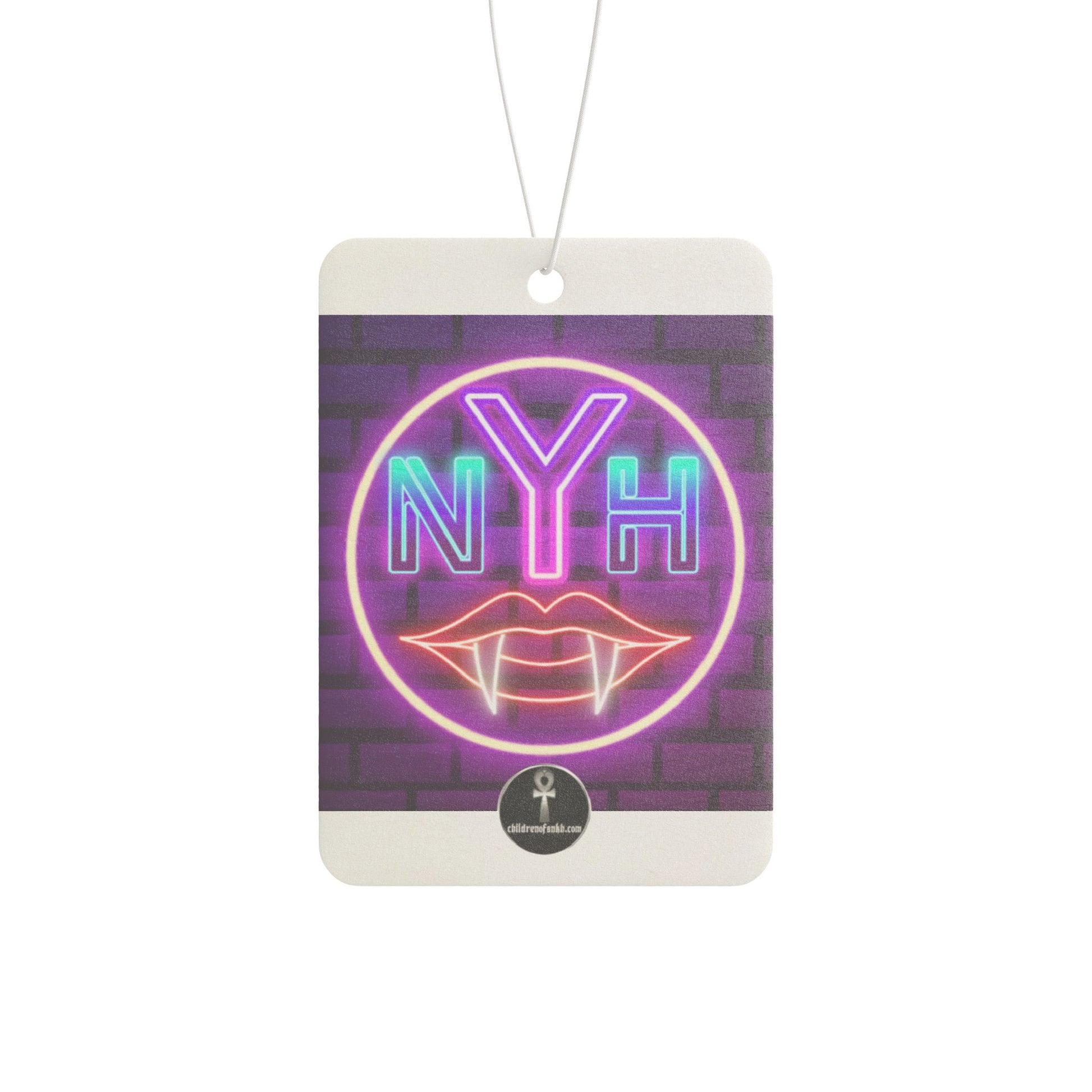 Add a touch of NYH personality to your driving experience along with a pleasant aroma thanks to this unique New York Hive car air freshener. Available in three captivating scents: Pine, New Car, and Black Ice. Designed for both functionality and style, this COA Universe air freshener features an all-over print that enhances your car's interior while delivering long-lasting fragrance. Choose your favorite scent and enjoy a fresh, pleasant atmosphere on every ride.