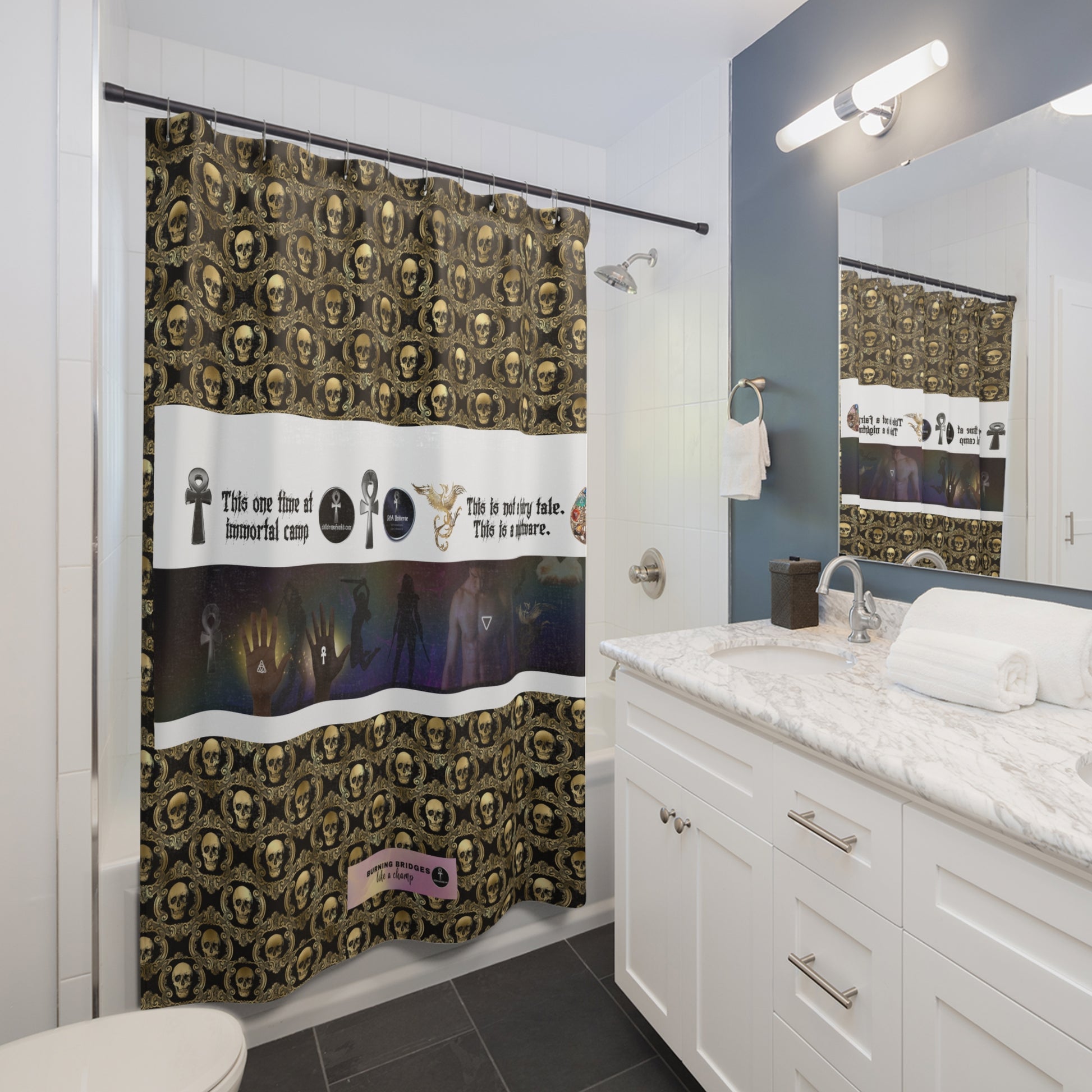 Transform your bathroom into a dark fantasy universe with these Shower Curtains featuring designs from the children of ankh and coa universe. Perfect for fans of dark fantasy and sci-fi genres, these curtains will add a unique and edgy vibe to your space. Ideal for those looking to elevate their bathroom decor with a touch of mystery and intrigue. Great for gifting on birthdays, Halloween, or any occasion where a little magic is appreciated.