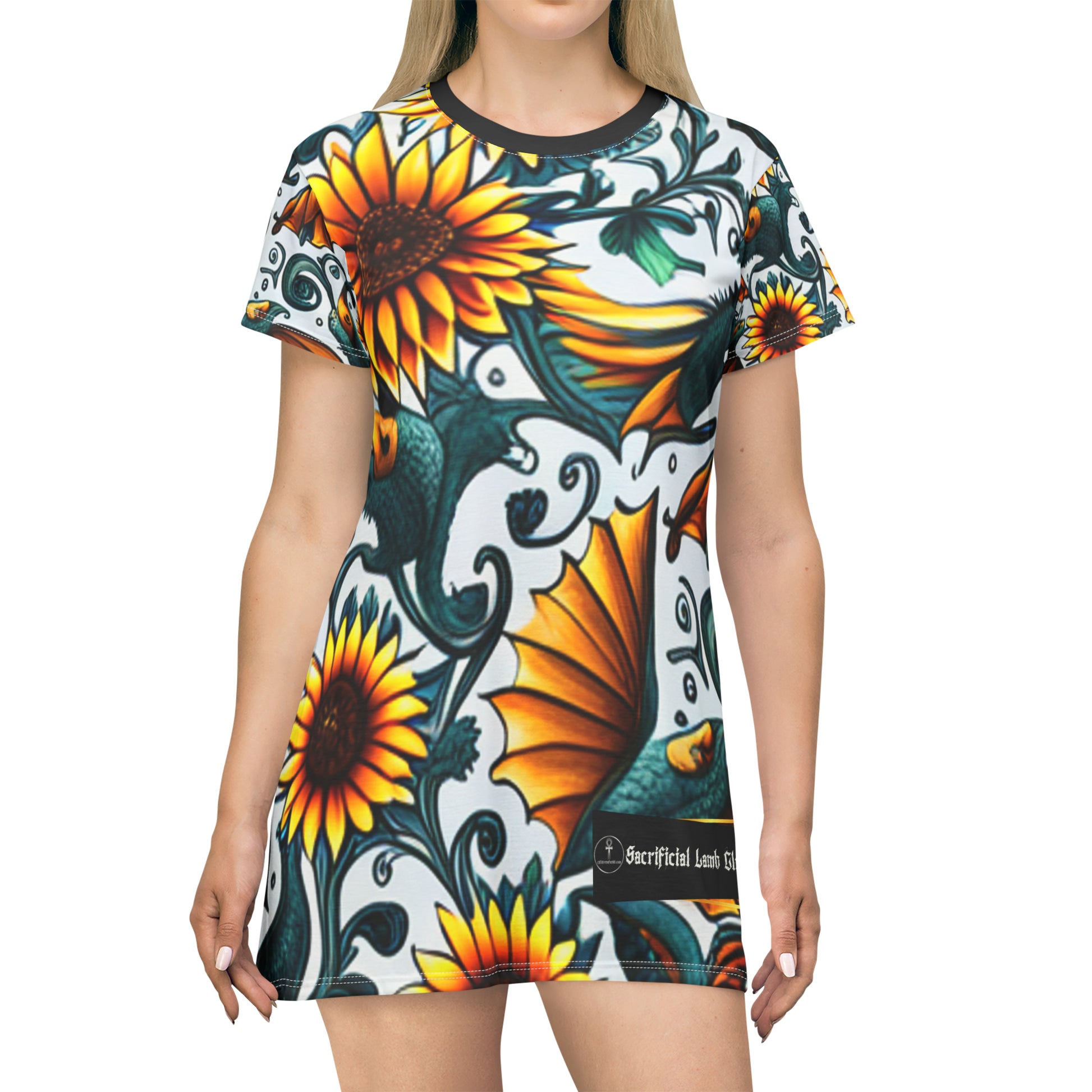 T-Shirt Dress (AOP) Sacrificial Lamb Club Merch, COA Series.