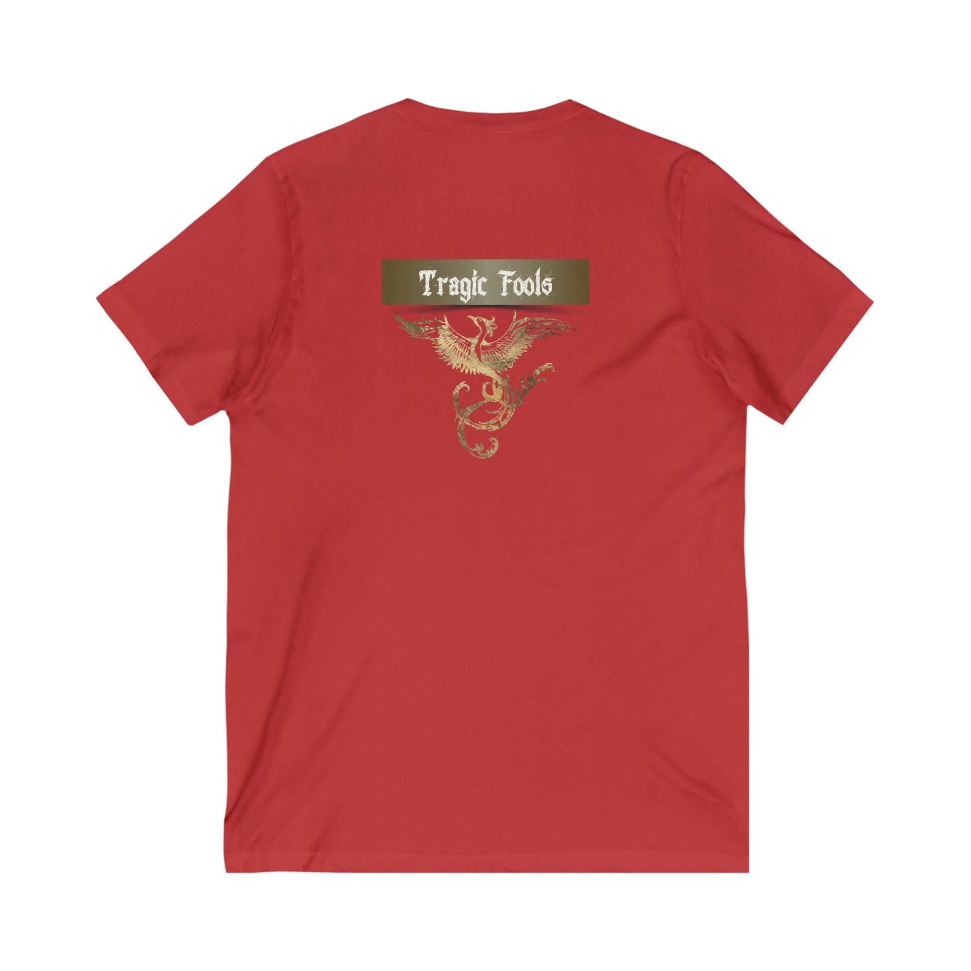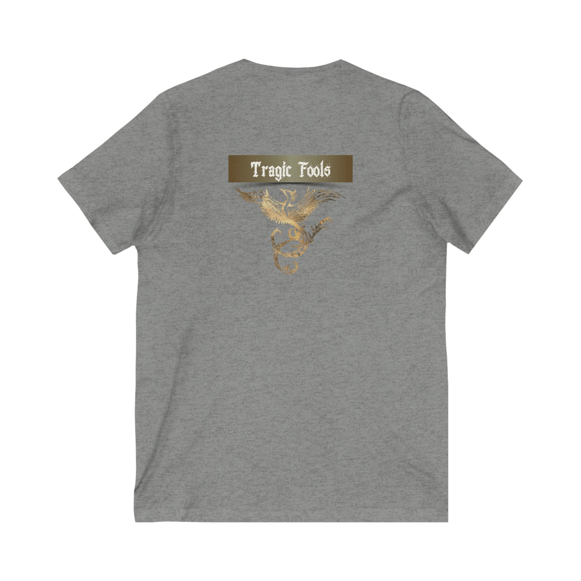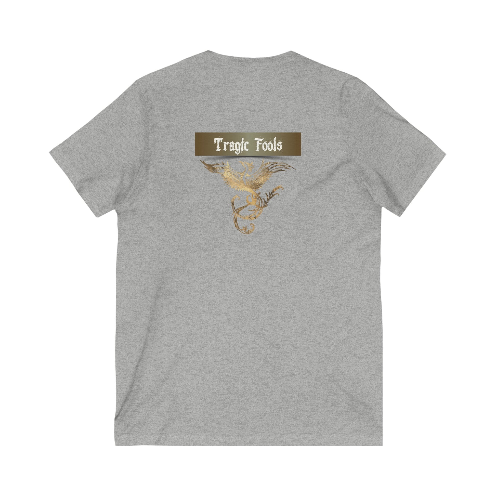 Unisex Jersey Short Sleeve V-Neck Tee COA Universe, Suck it up You're immortal on the front. Tragic Fools on the back